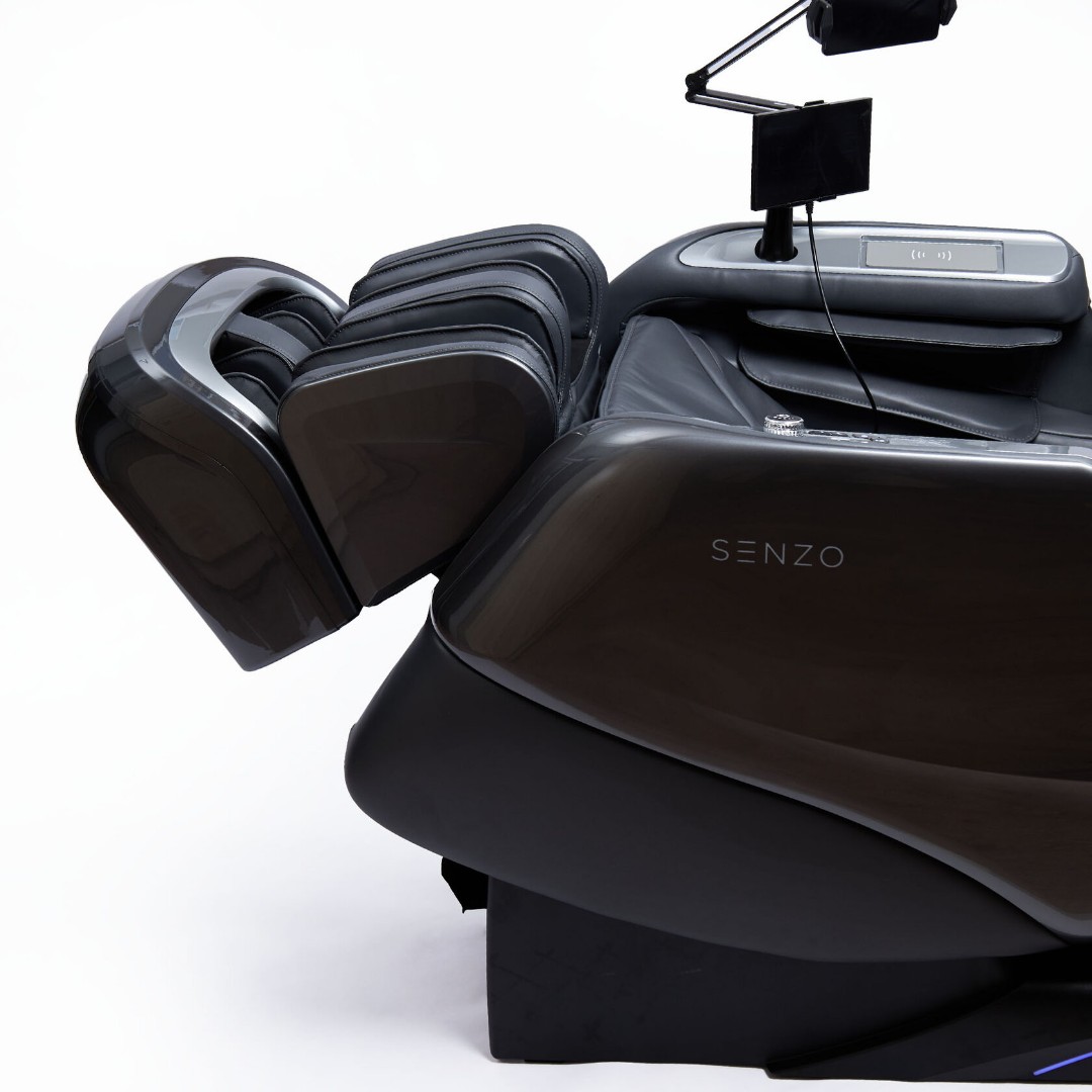 - Функция растяжки позвоночника - при захвате голеней массажными подушками, кресло опускает и вытягивает нижнюю часть туловища, помогая снять напряжение в области поясницы. Этот вид массажа особенно полезен для людей, испытывающих длительные статические или динамические нагрузки в области спины и поясницы.