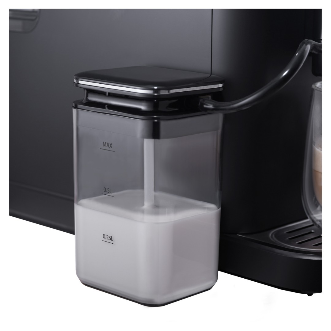 Кофемашина Korting KACM 2002 Andante — это современный прибор с большим количеством настроек, выполненный в строгом черном цвете. Она предназначена для приготовления как зернового, так и молотого кофе и оборудована итальянской помпой с давлением 20 бар, что обеспечивает идеальное извлечение ароматов и вкусов. Модель предлагает восемь автопрограмм с возможностью ручной настройки, что дает пользователю возможность разрабатывать и сохранять индивидуальные рецепты. Сенсорный экран с видеосопровождением облегчает выбор и управление машиной. Кофемашина поддерживает 15 уровней помола, а встроенный капучинатор позволяет готовить великолепные кофейные напитки с молоком одним нажатием сенсорной кнопки. Резервуар для молока объемом 750 мл, входящий в комплект, удобно убирается в холодильник для хранения.