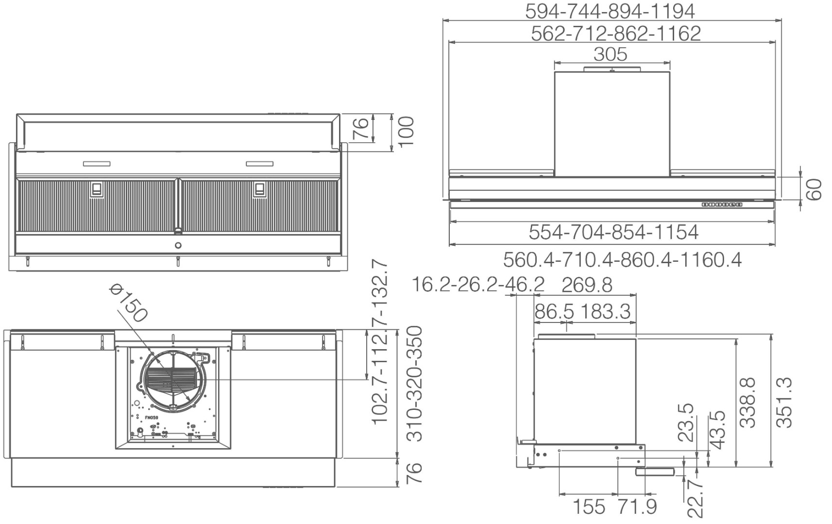 - Мин высота над индукционной/электрической плитой: 43 см