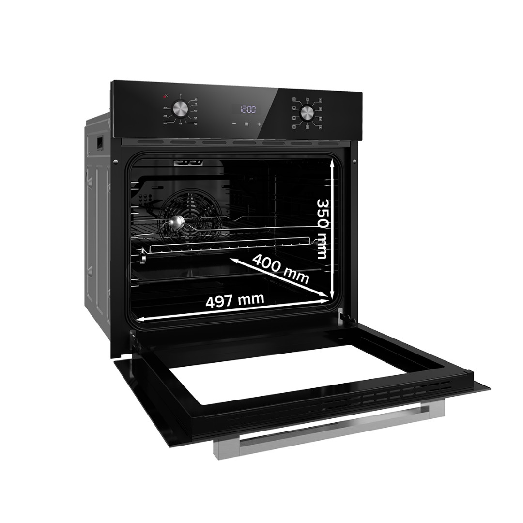 Духовой шкаф 70 литров имеет мощность 2800 Вт, что позволяет ему быстро разогреваться до заданной температуры в диапазоне от 50 до 250 градусов. Таким образом, вы можете выбрать оптимальный режим для приготовления различных блюд, от деликатных до требующих высокой температуры.
