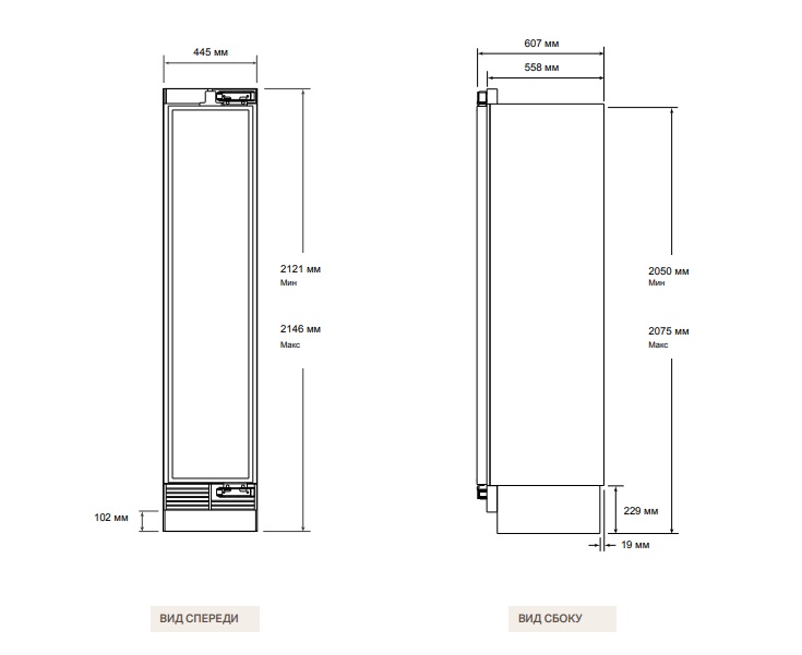 - Общая высота: 2121 мм ~ 2146 мм