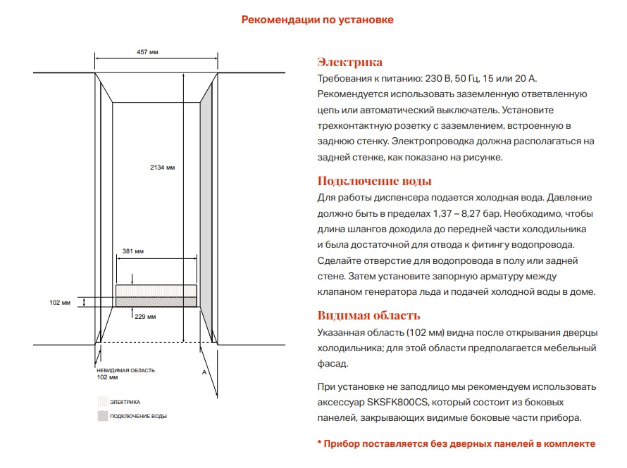 - Комплект боковых панелей при установке не заподлицо: SKSFK800CS
